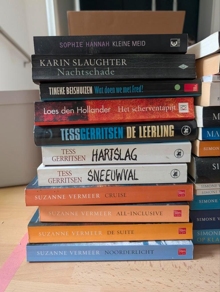 Ivm met zolder opruimen 30 thrillers te koop. Graag alles in 1 keer overnemen. Doe een leuk bod en graag op komen halen omdat het te zwaar is om te verzenden 😊 onder andere boeken van: tess gerritsen
