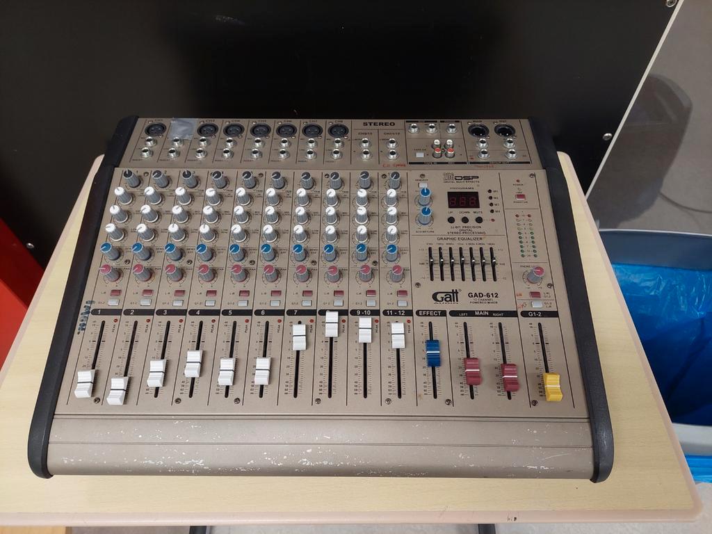 Gratis afhalen: gatt audio gad-612 12 channel versterker/mixer plus twee 300watt geluidsboxen skytec met woofer en tweeter en verbindingskabel. De hele set werkt nog steeds. U moet het wel op komen h