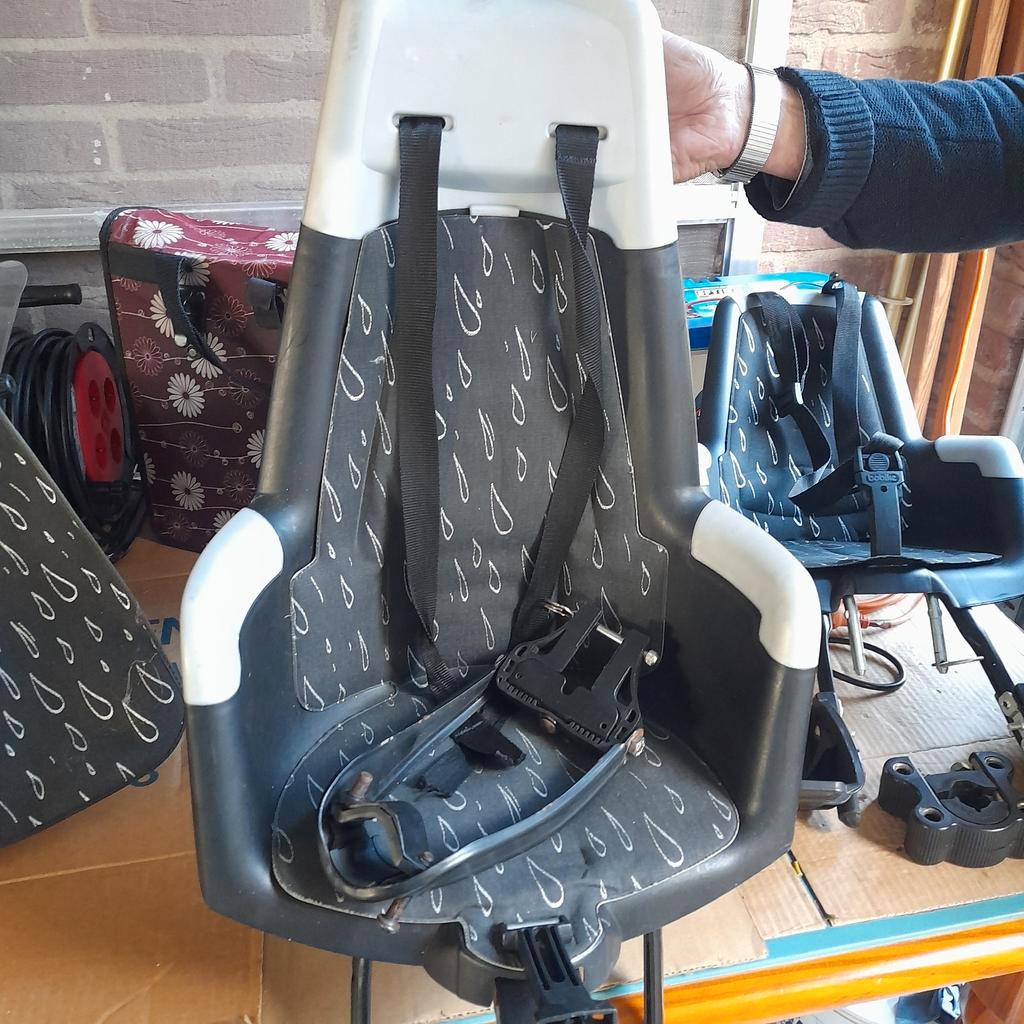 Gebruikt fietsstoeltje voor achterop de fiets. De riempjes functioneren niet meer en moeten vervangen of gerepareerd worden. Verder is het stoeltje in goede staat.