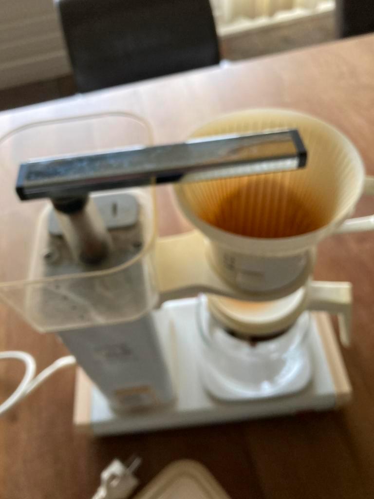 Wit koffiezetapparaat. Doet het nog. Zie foto 3. De snoer is geplakt zie foto 5. Moet wel schoongemaakt worden, is stoffig, lang niet gebruikt,