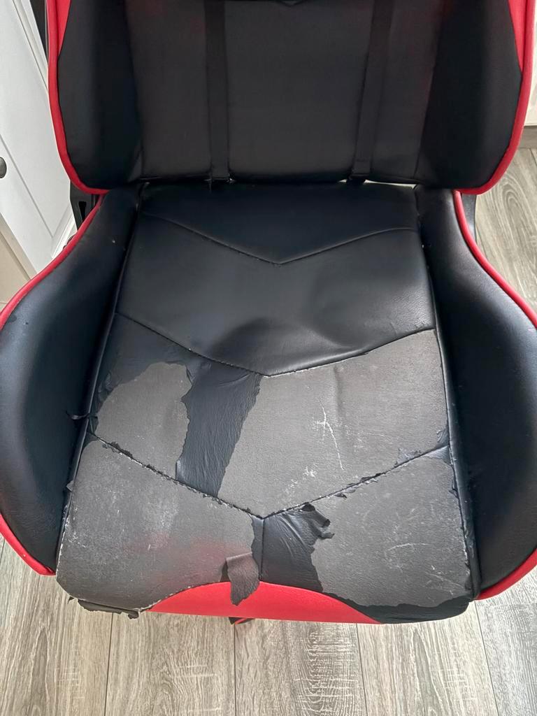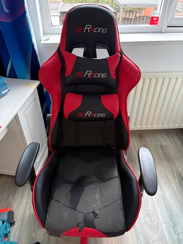 Functioneert nog heel goed. Enkel heeft de bekleding van de zitting losgelaten
