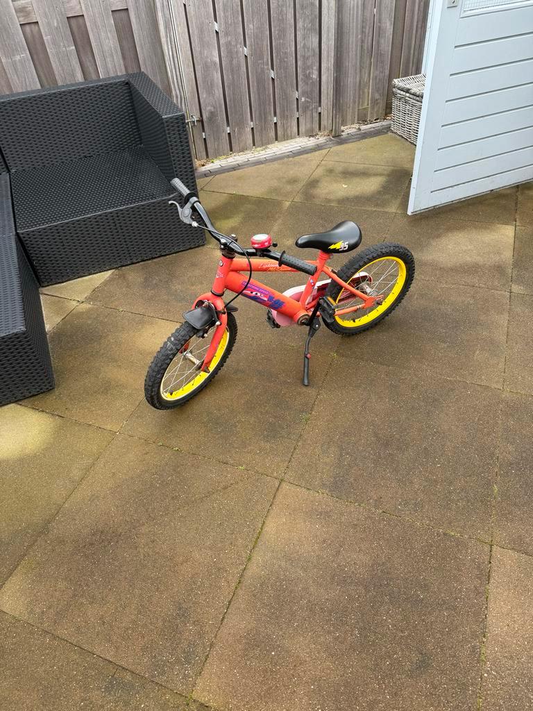 Leuke kinderfiets. De fiets is standaard en de bel werken. De banden zijn goed, blijven hard. Er zijn wel veel gebruikssporen aanwezig, dus de fiets zou eigenlijk een nieuwe verfbeurt moeten krijgen.