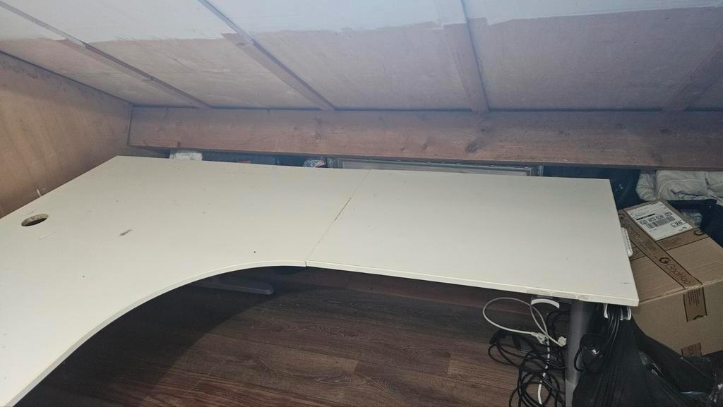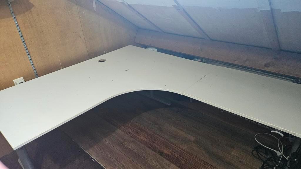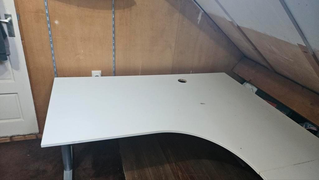 Ruim hoekbureau met afmetingen 160x160x80 cm. Perfect voor een comfortabele werkplek thuis of op kantoor. Het bureau is in goede staat en biedt voldoende ruimte voor een computer, documenten en andere