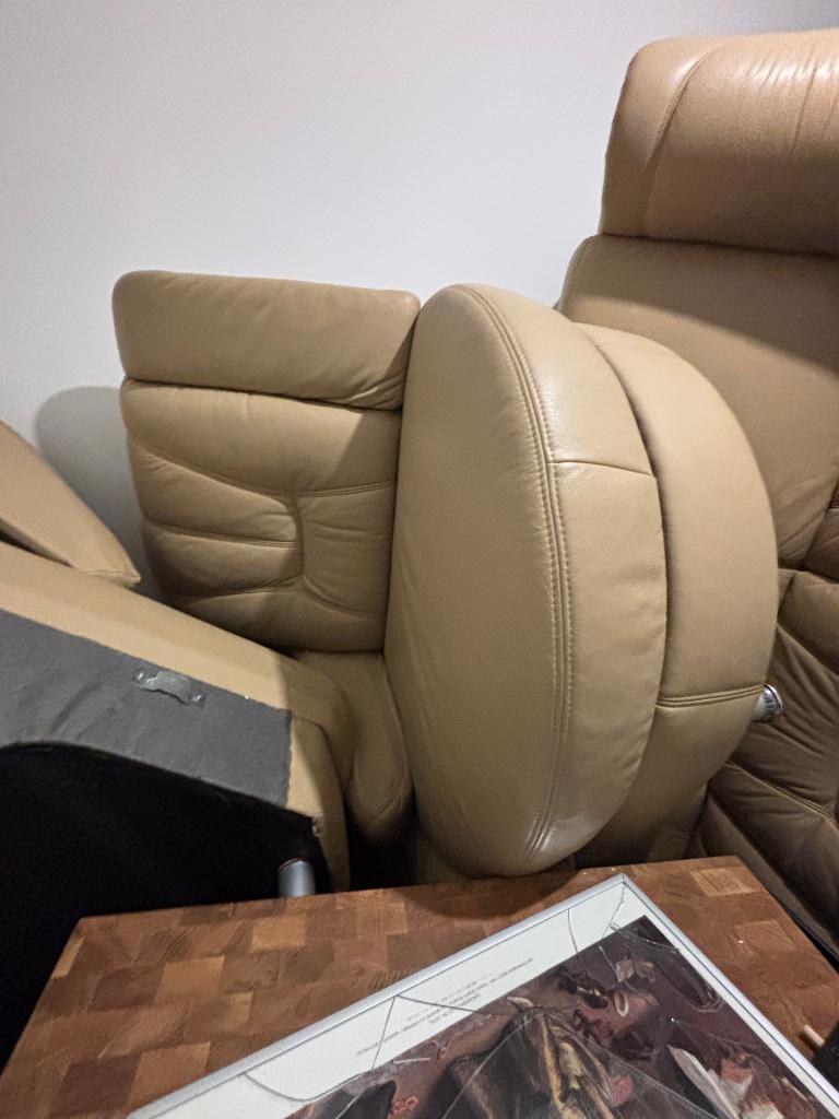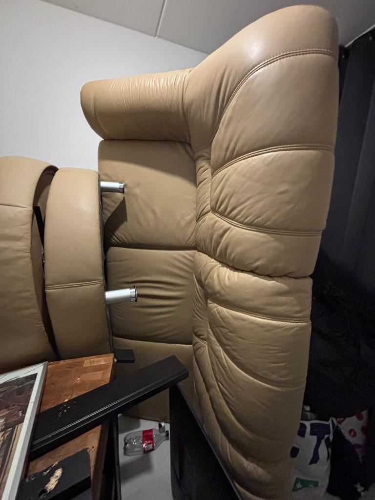 Nette leren bank in drie delen. Gaat weg wegens aanschaf nieuwe bank. In prima staat, het leer is in goede conditie. Zelf (gratis!!) Ophalen :)