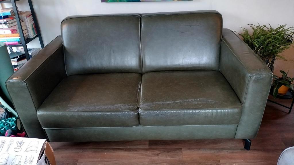 Gratis af te halen: een tweezitsbank. Graag vandaag of morgen uiterlijk ophalen in voorthuizen. De bank is gebruikt en vertoont slijtage, vooral op de zitting. Ideaal voor iemand die handig is en de b