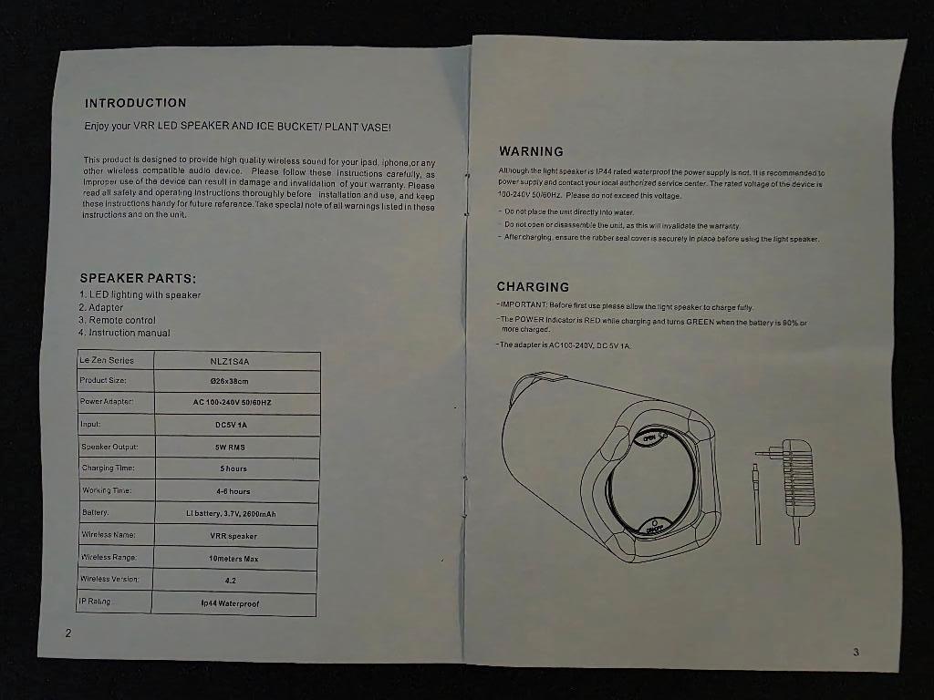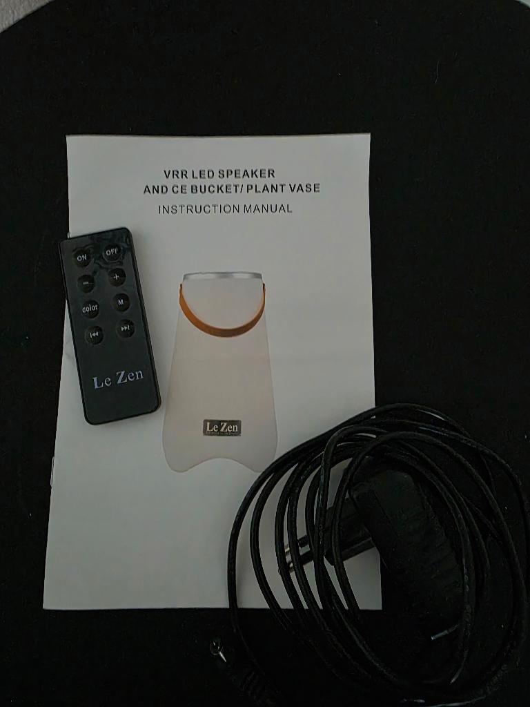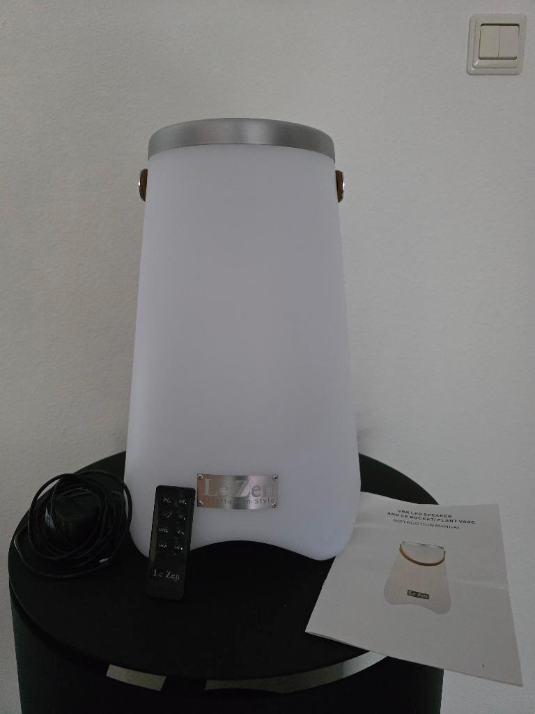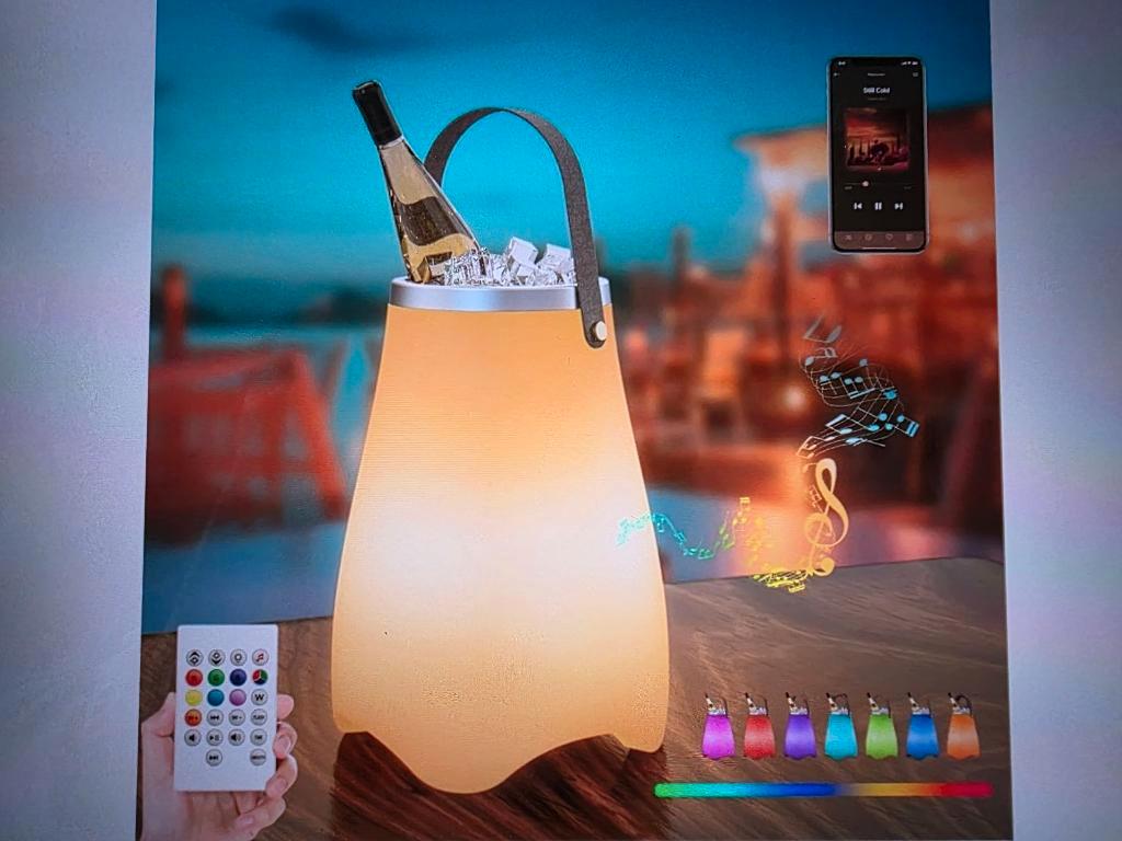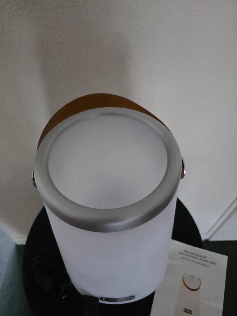 Speaker en ijs emmer met led verlichting. Inclusief afstandsbediening voor aan/uit, volume regelen, kleuren veranderen. Met lader.
