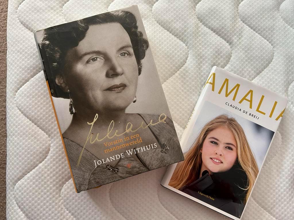 Twee boeken over juliana en amalia. Een boek is ''juluana vorstin in een mannenwereld'' geschreven door jolande withuis. Het andere boek is ''amalia'' geschreven door claudia de breij. Bei
