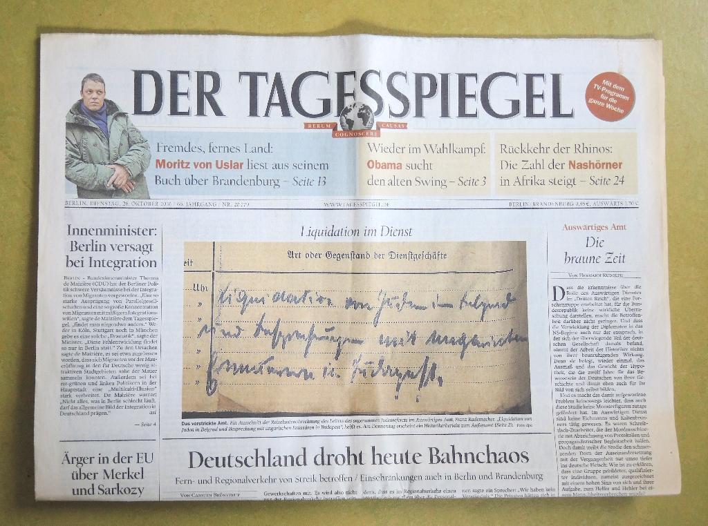 Duitse krant der tagesspiegel dagblad uit berlijn dinsdag 26 oktober 2010 afmetingen: 59 x 40 cm. In goede staat.