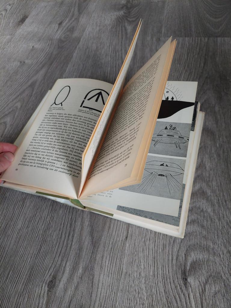 Vintage boek over ufo''s uit 1971. Foto''s schetsen, verhalen en onbekende verschijningen uit de lucht. Leuk voor de verzamelaar. Hardcover met sleeve. 270 Blz. Hardcover. Voor wie er de verzend