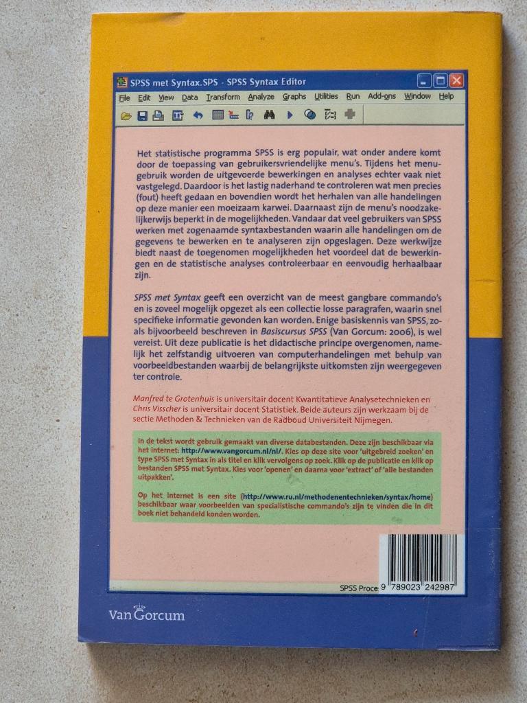 Spss is een veel gebruikt statistisch model voor wetenschappelijk onderzoek binnen de psychologie. Spss met syntax is een handige wegwijzer bij het invoeren en uitwerken van gegevens. Het boekje wordt
