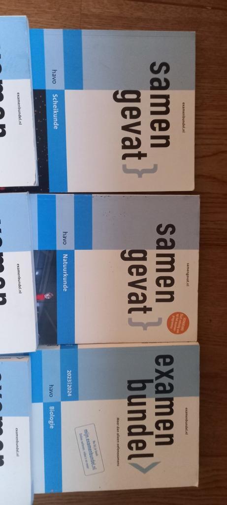 Exambundels havo. Natuurkunde 2023_2024 scheikunde 20²2-2023, biologie 2023-2024 wiskunde b 2022-2023en samengevat scheikunde en natuurkunde.