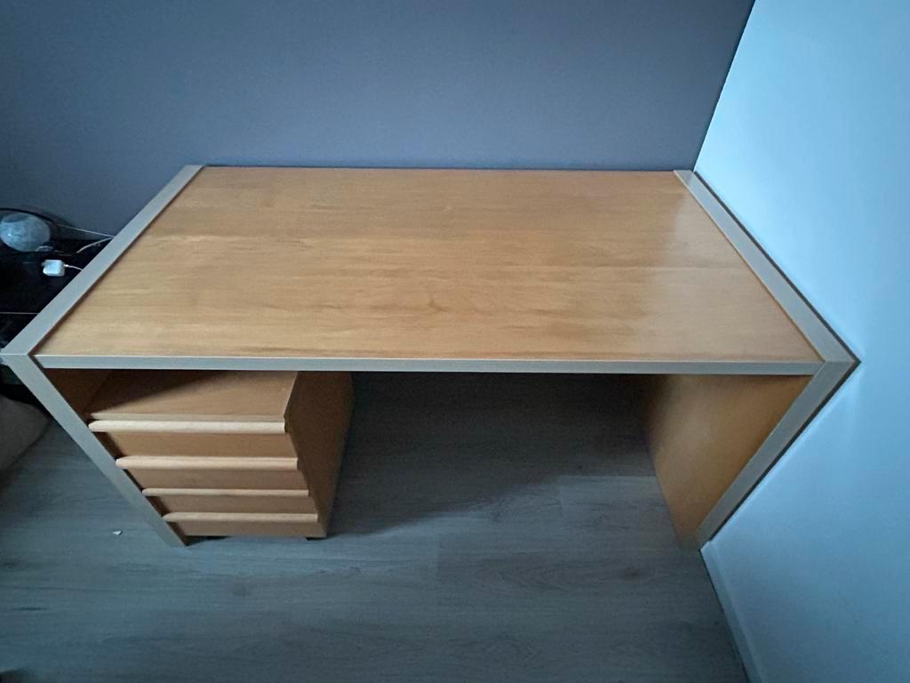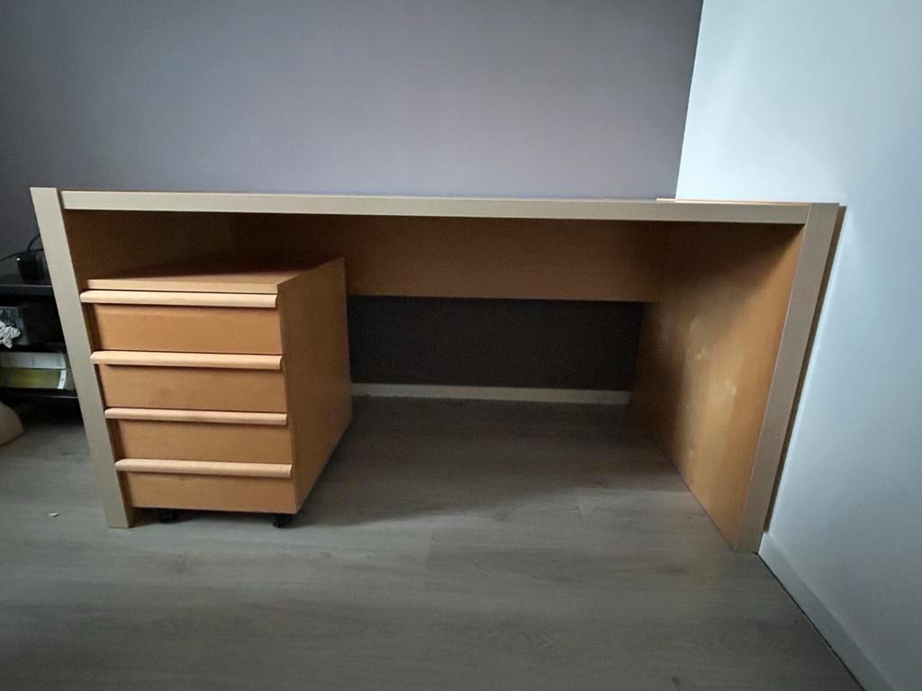 Gebruikt maar nog goed bureau met los ladenblok op wieltjes. Gaat weg wegens overcompleet. Maten bureau breedte 150cm diepte 80cm hoogte 76cm. Afmetingen ladenblok breedte 40cm diepte 51cm hoogte 59cm
