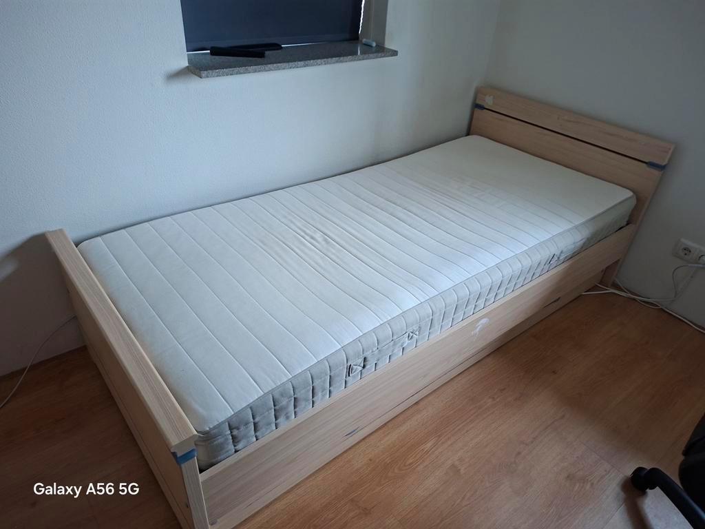 Gratis op te halen. Eenpersoons bed incl. Lattenbodem en matras. Het bed is in goede staat en kan direct gebruikt worden. Ideaal voor een logeerkamer. Incl. Nachtkastje en lade voor onder het bed.