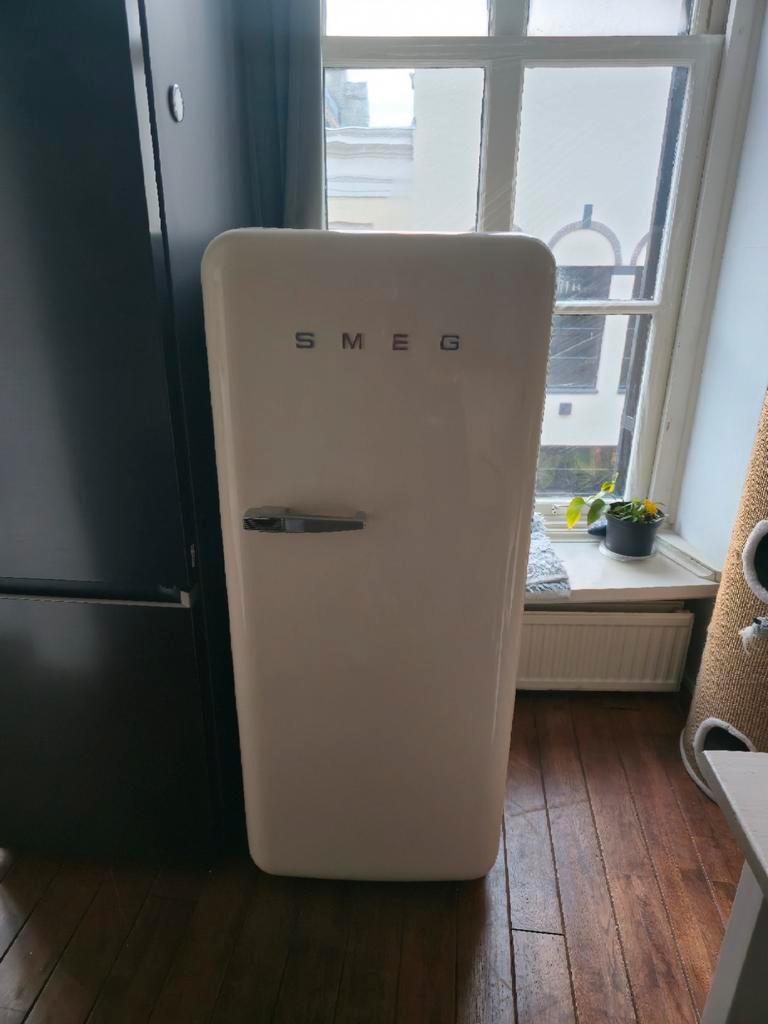 Leuke retro smeg koelkast te koop. De koelkast heeft gebruikerssporen en de hendel van het vriesvak is afgebroken, maar hij sluit wel, de rubbers kan je vervangen (zie foto''s). Desondanks is het n
