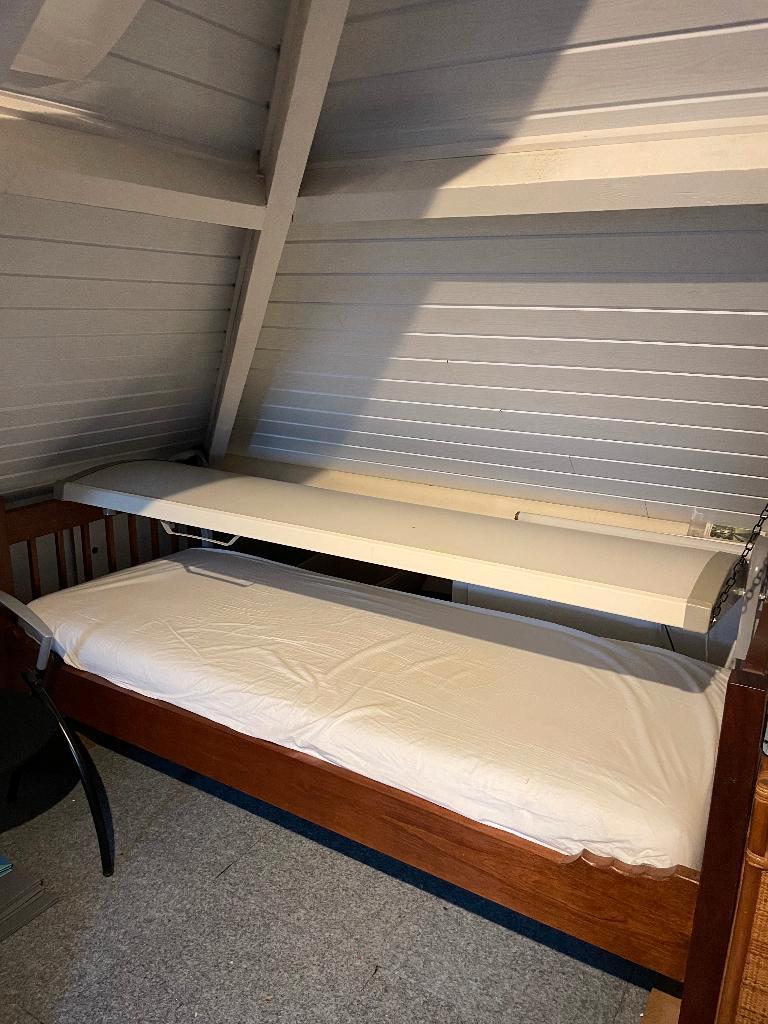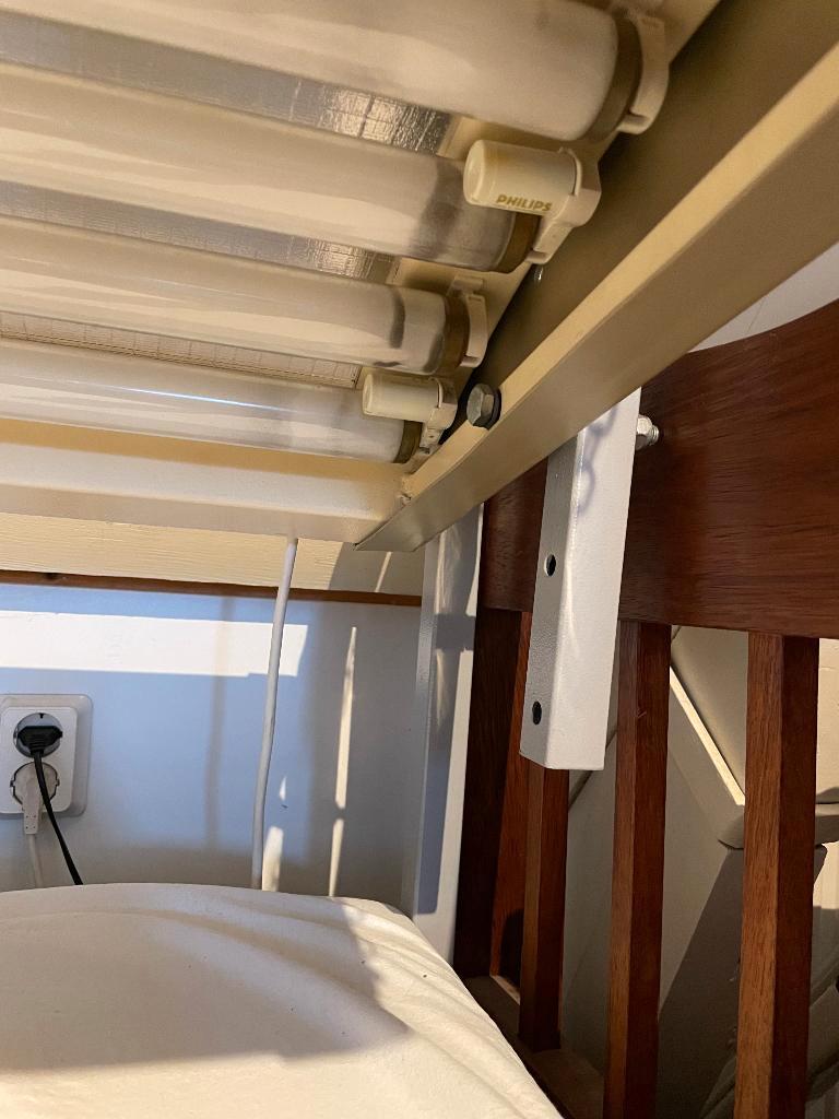 Gratis op te halen. Goed werkende zonnehemel met 7 lampen en 1 reservelamp. Deze zonnehemel is uiteraard compleet met standaard frame/beugel. De zonnehemel is exclusief het onderstaande bed. Dit hoort