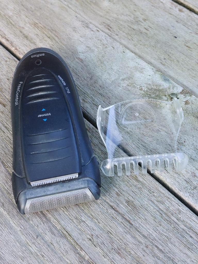 Eenvoudig braun scheerapparaat met etui, borstel en smeermiddel. Werkt op netspanning. Prima voor de beginner. Gezien de "prijs" aub ophalen.