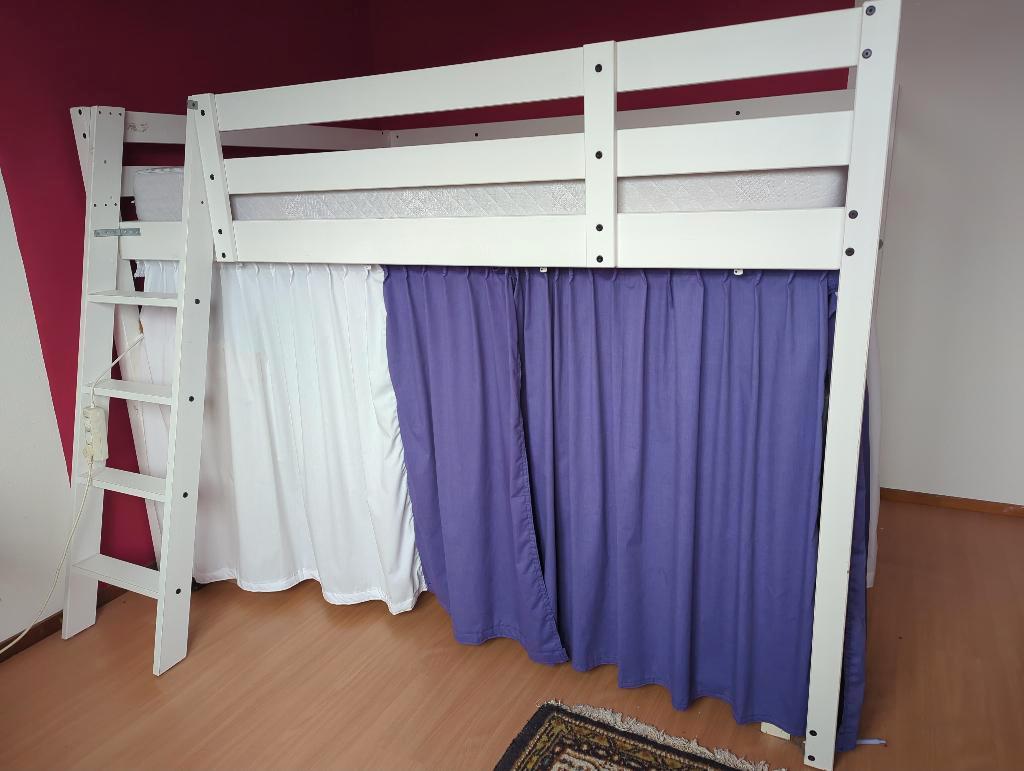 ikea stora hoogslaper (wit) gratis af te halen. De matrasmaat is 140cm x 200cm. Let op! Het is alleen het bedframe, zonder matras. Het bed is wel ingekort tot 107cm onder het bed en totaal 150cm hoog