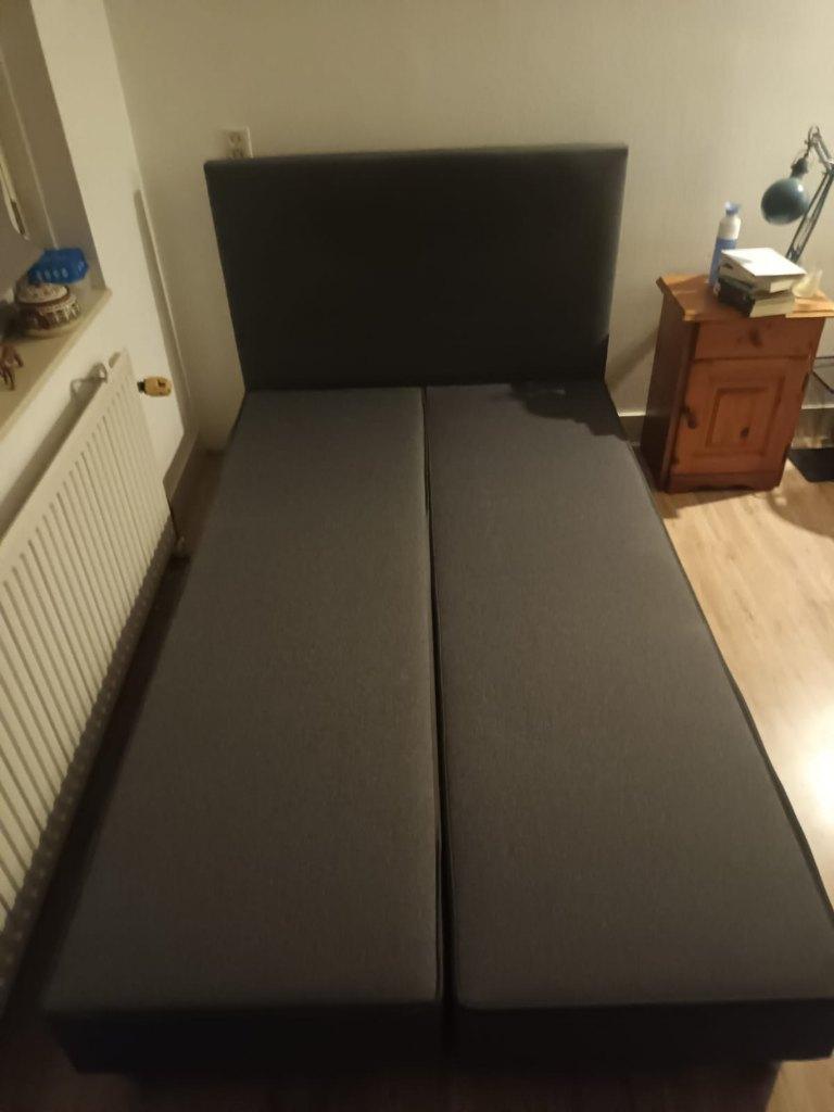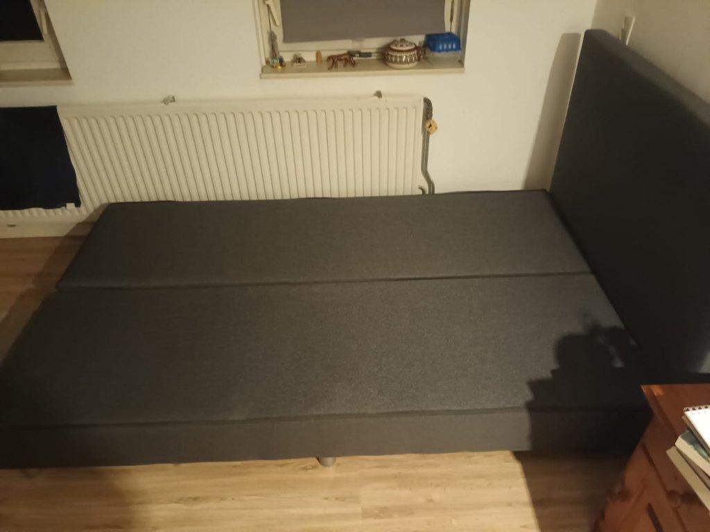 Gebruikte boxspring van 120x200 cm. Bestaat uit een hoofdeinde en 2 onderdelen voor de bodem. Hoofdeinde heeft een kleine beschadiging zoals op de foto te zien is. Gratis op te halen. In principe zond