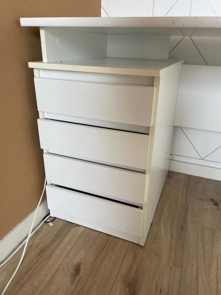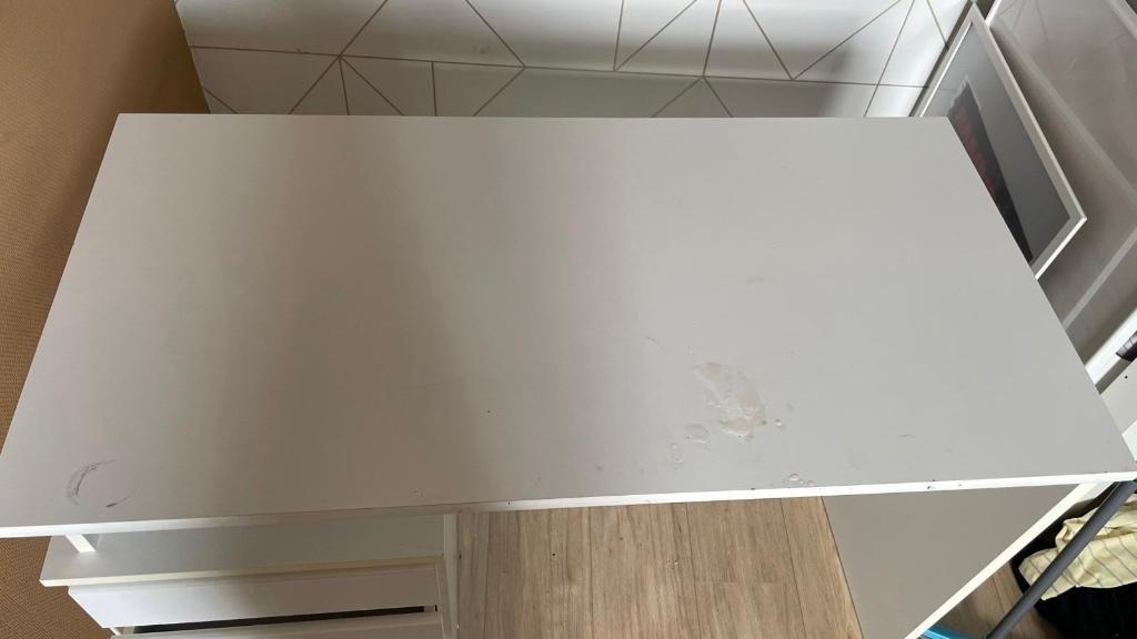 Gratis op te halen. Bureau met 4 lades. Zitten lijmresten op het blad.