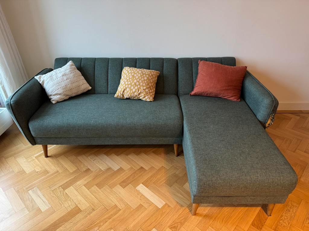 Three person sofa. You can take the three cushions with it if you want.