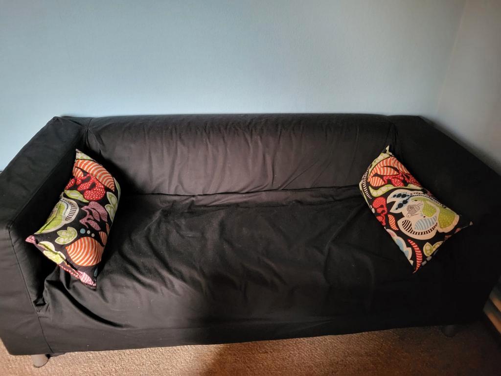 Gratis zwarte bank, afmetingen ongeveer 180 cm lang en 85 cm breed. Ophalen in overleg.
