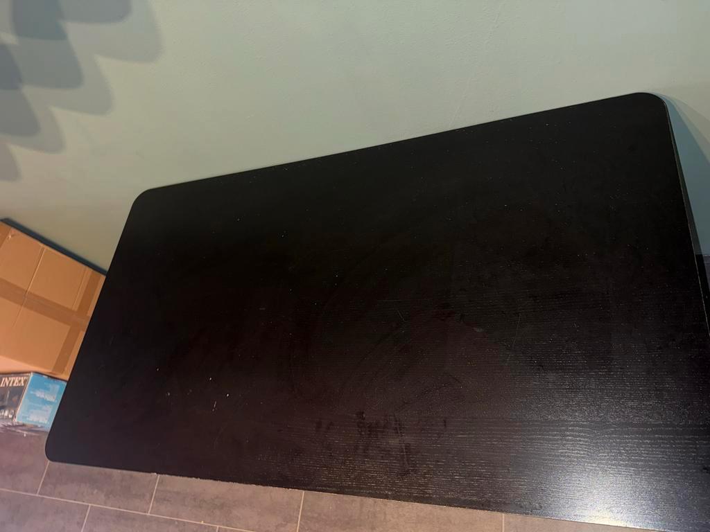 Gebruikte zwarte eettafel van 180x78 cm. Het lak is wat vervaagd op de rand, maar de tafel kan nog prima een ronde mee. Gratis af te halen!