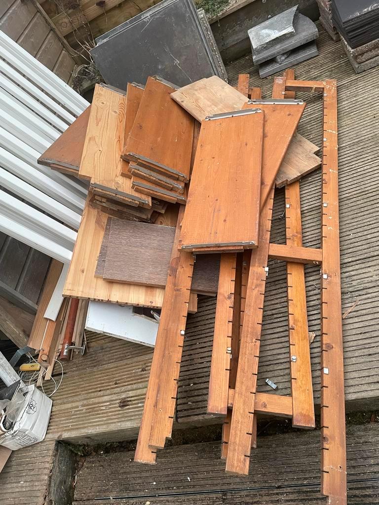 Gedemonteerde houten stellingkast gratis af te halen in wijdewormer. 29D x 78b x 180h