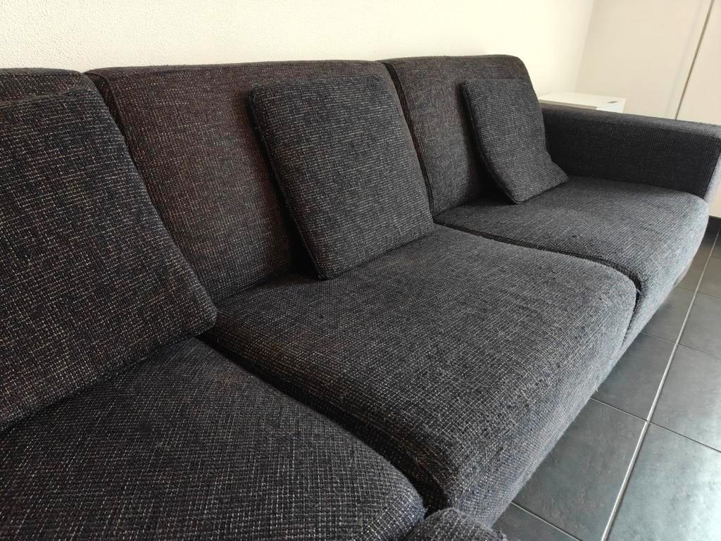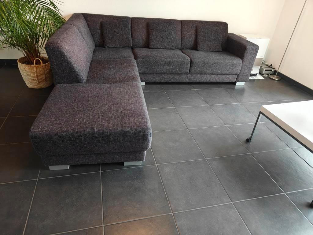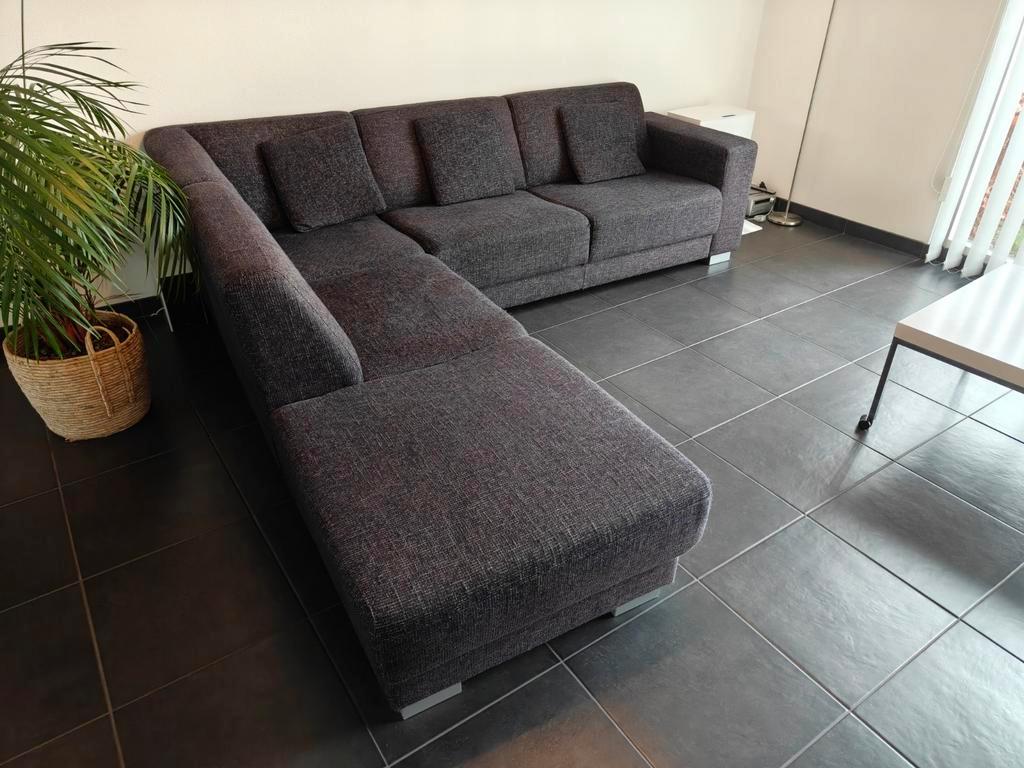 Gratis af te halen hoekbank. De bank is 2.40 Meter bij 2.55 Meter. De bank is gebruikt, maar zit nog prima. Inclusief drie sierkussens. Kleur is donkerblauw/ antraciet/ zilvergrijs. Uiterlijk vrijdago