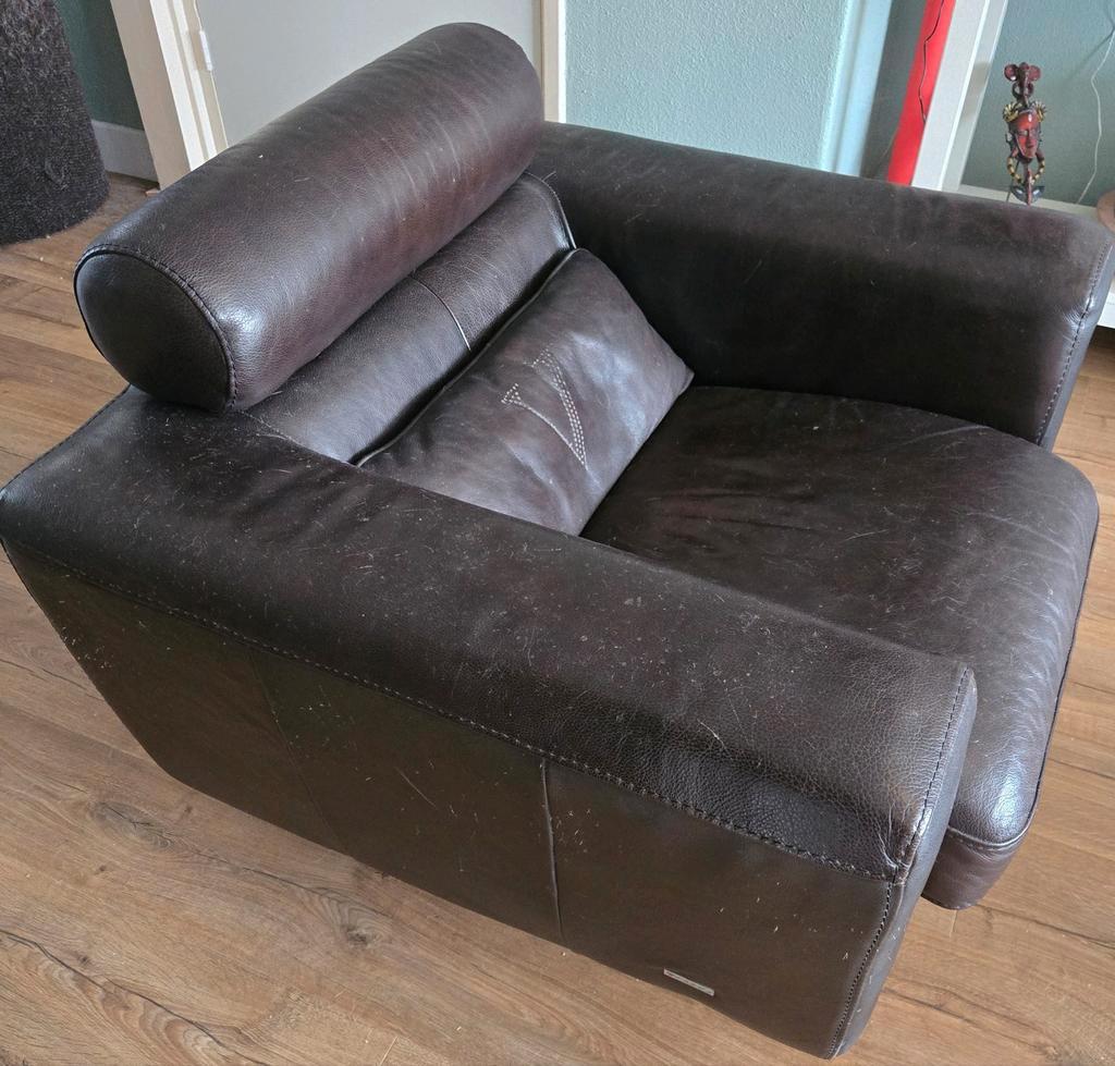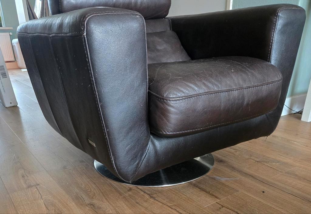 Draaibare bruine vintage leren fauteuil van het merk violino nog in nette staat. Formaat 90x85x80 cm (bxdxh). Gratis op te halen.