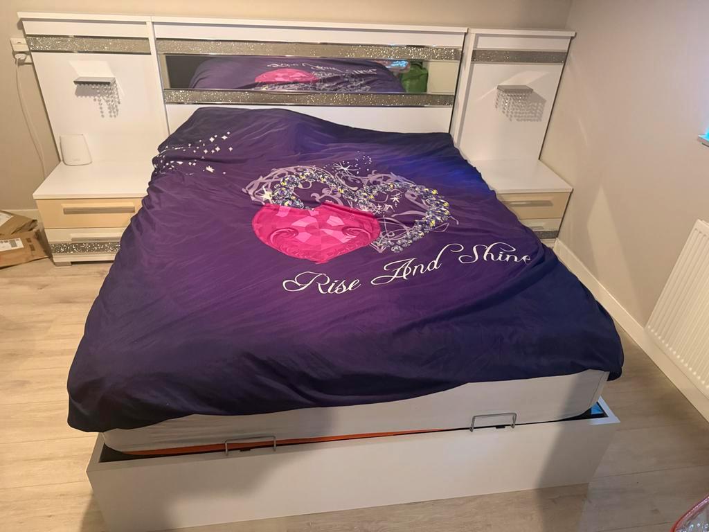 Mooi tweepersoonsbed met afmetingen 160x200 cm. Inclusief handige nachtkastjes. Ideaal voor een comfortabele nachtrust. Het bed is in goede staat en klaar voor gebruik.