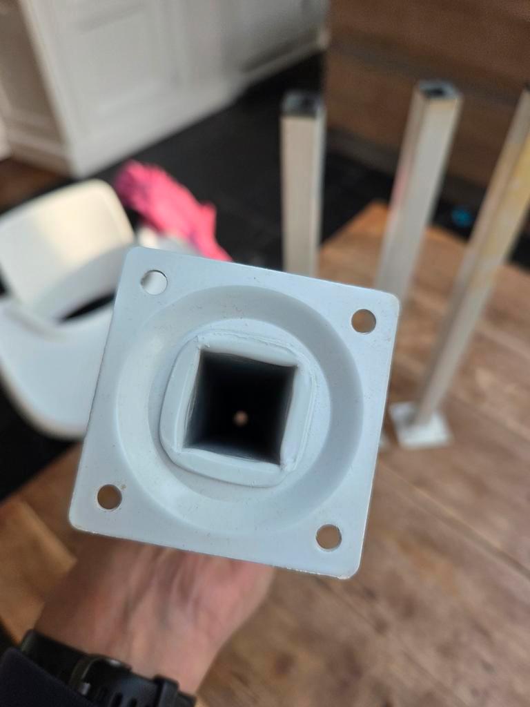 Tarrox tafelpoot gratis afhalen 43 cm lang, dikte 2,5 cm plat stuk, 6x6 cm wit 1 pootje moet een beetje schoongemaakt worden handig voor kinderbureau, kindertafel of bijzettafel