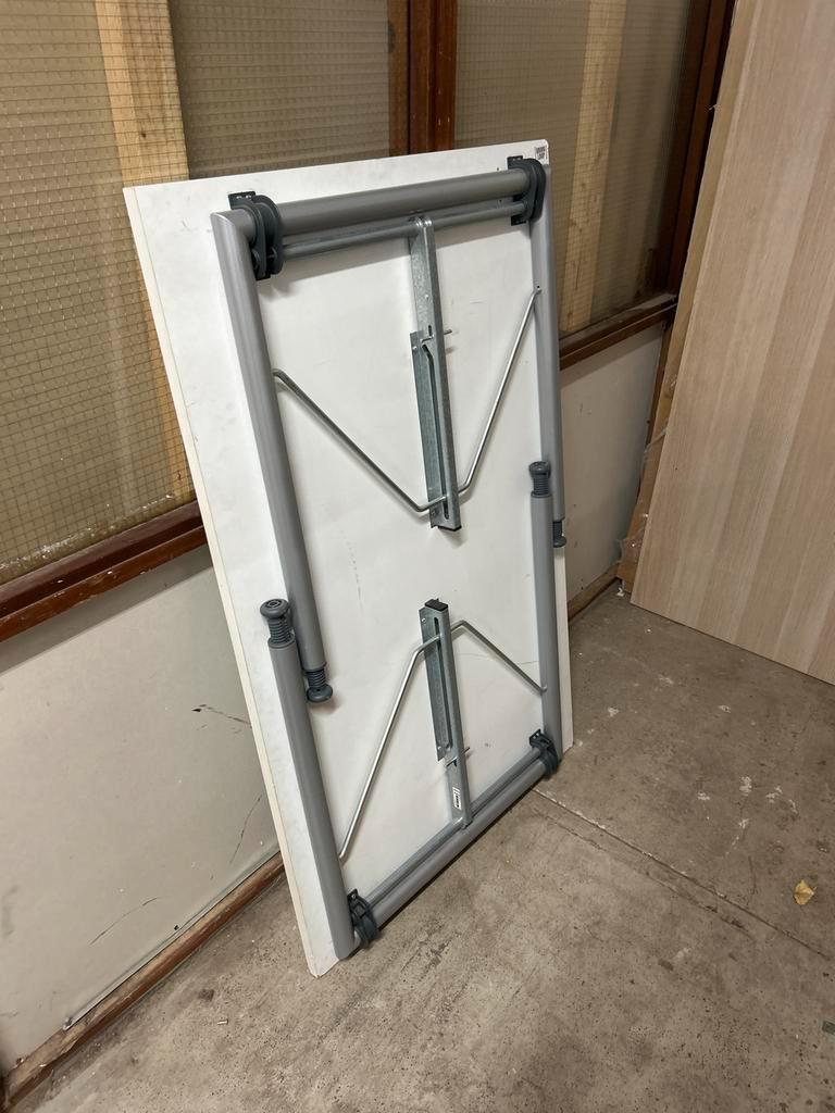 Handige klaptafel of bureau met afmetingen 80 x 130 cm en een hoogte van 73 cm. Ideaal voor kleine ruimtes of als extra werkplek. Makkelijk op te bergen wanneer niet in gebruik.