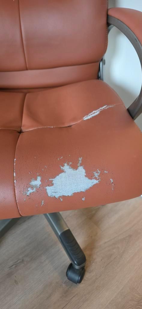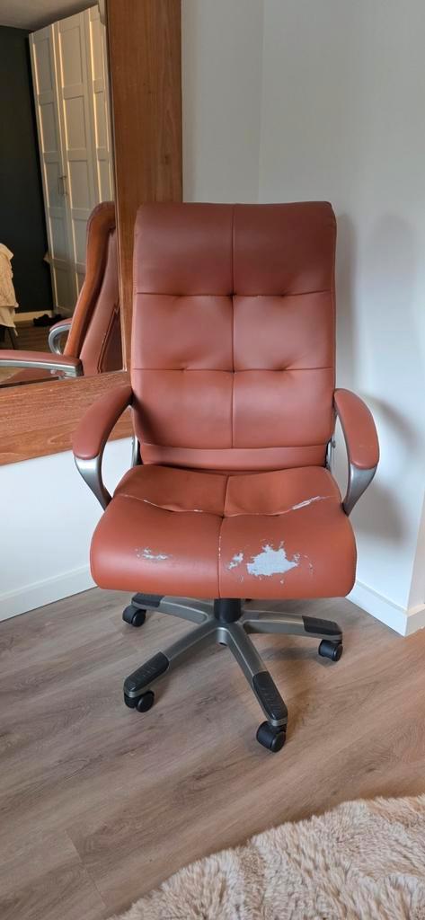 Bureaustoel in hele goede staat, alleen de bekleding op het zitvlak is wat versleten (zie foto 2), verder zit hij nog heerlijk en is hij nog heel goed!