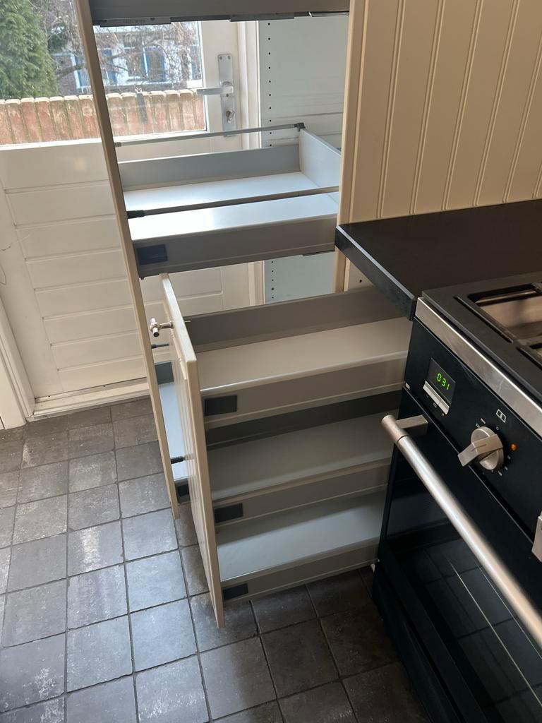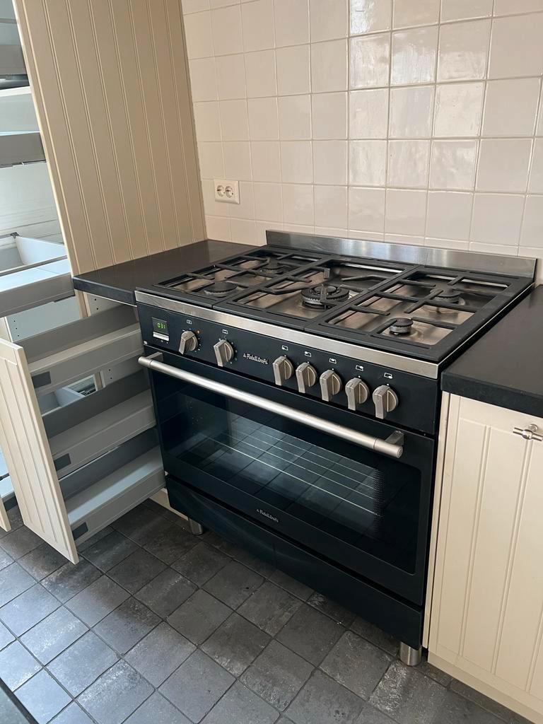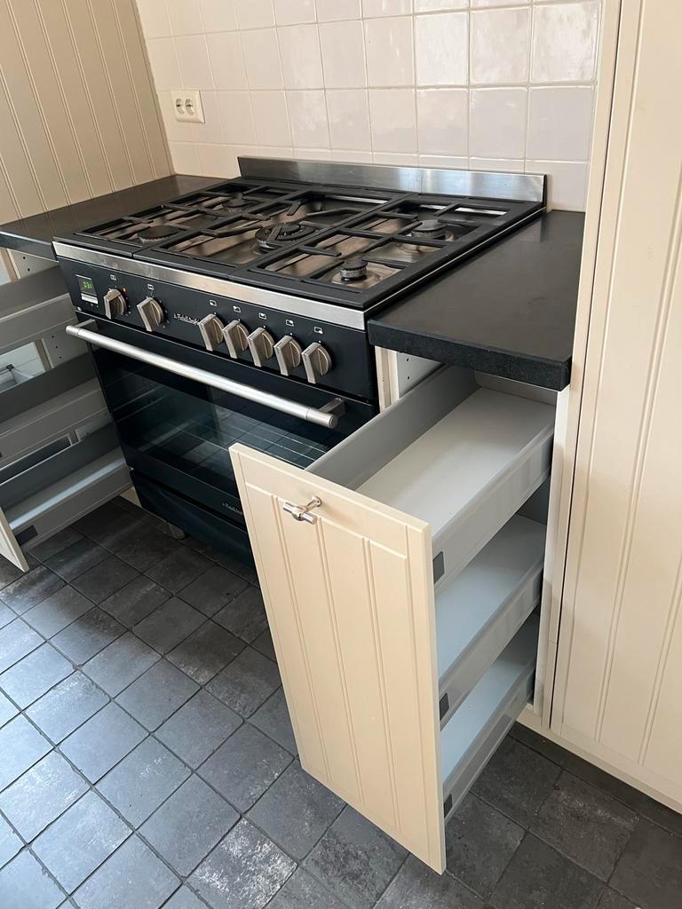 Gratis complete keuken inclusief inbouwapparatuur en een stenen blad. Zelf demonteren en ophalen, per direct beschikbaar. De keuken bevat een inbouwafzuigkap, een fornuis met 5 pitten (wokbrander) en