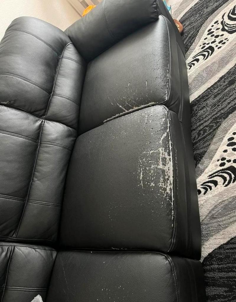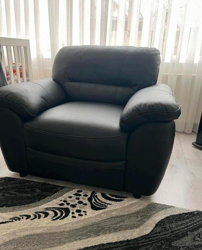 Mooie hoekbank en een losse 1-zits zitbank bekleed met zwart imitatieleer. De hoekbank is helaas beschadigd (zie foto''s). De banken kunnen eventueel gebruikt worden voor herbekleding. Afmetingen h