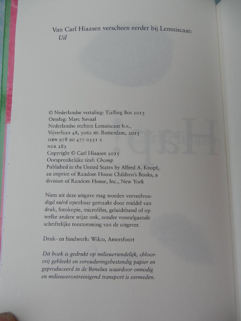 Hap! Carl hiaasen; hardcover/ongelezen staat: 313 blz omdat dit een bibliotheekboek is (nieuw) mag deze gratis bij de aankoop van een ander item
