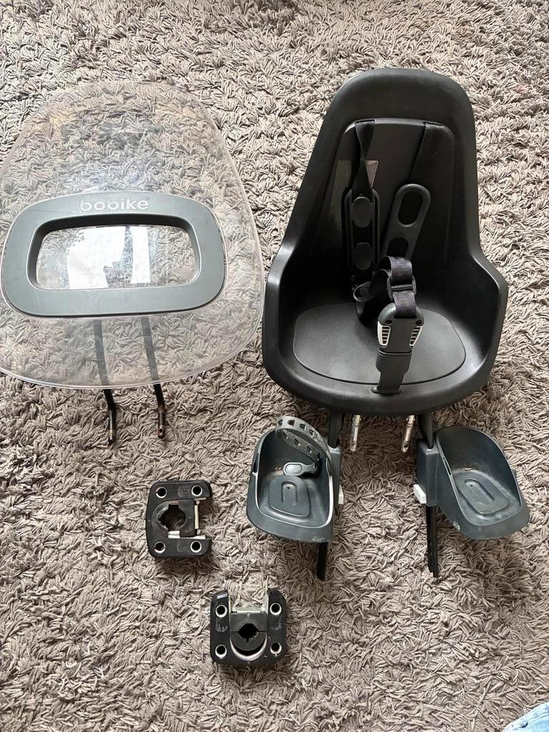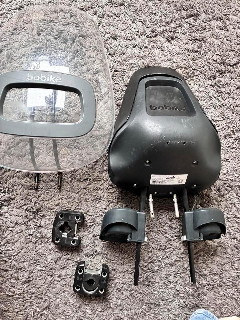Bobike fietsstoeltje voor montage voorop de fiets. Het stoeltje is gebruikt, en mist 1 gespje bij de voeten. Verder in goede staat. Incl extra adapter zodat hij makkelijk op een andere fiets kan worde