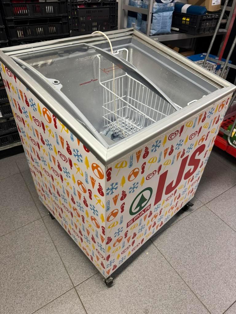Ter afhaling aangeboden: ijsvriezer werkt nog, alleen de schuifdeur bovenop is defect.