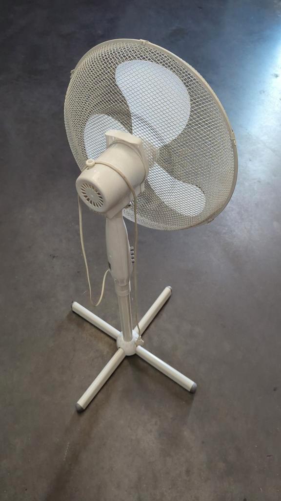Deze staande ventilator is gebruikt, maar werkt gewoon