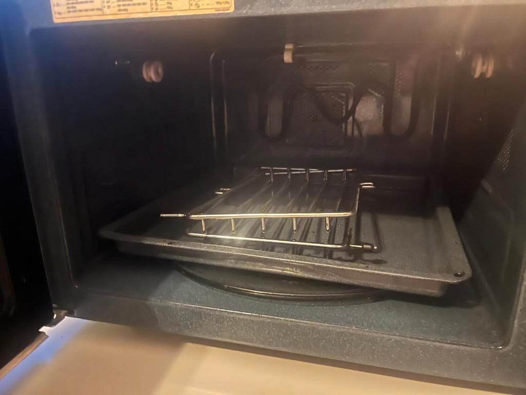 Gaat weg vanwege nieuwe keuken. Werkt prima. Wel vrij groot: zit qua grootte tussen oven en magnetron in.