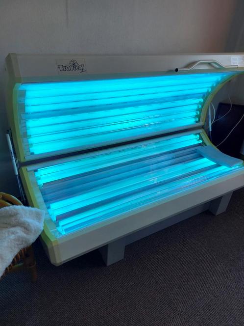 Gebruikte tropical sun dubbelzijdige zonnebank. In goede staat en klaar voor gebruik. Aantal lampen is 15 of meer. Op t moment vd foto deden 5 lampen t niet. Zelf uit elkaar halen en dragen. Staat op