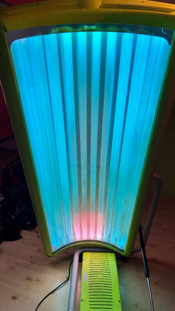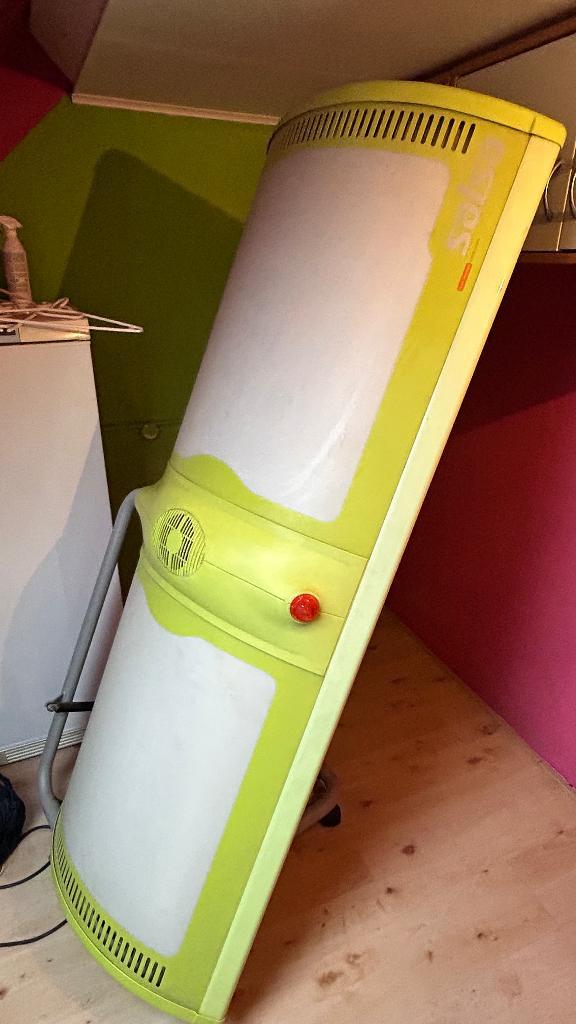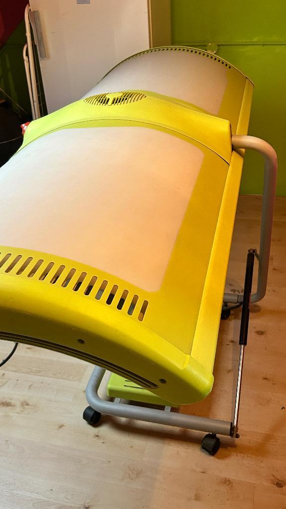 Zonnebank salsa met 10 lampen. Werkt nog perfect, lampen zijn aan vervanging toe, onderplaat is beetje los (zie foto) maar met vervangen van lampen zal deze weer juist teruggeplaatst kunnen worden den