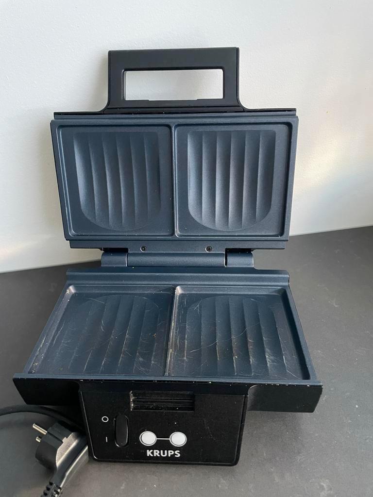 Krups tosti-ijzer te koop. Het apparaat werkt nog goed, maar het handvat is afgebroken, waardoor het niet meer dichtklikt.