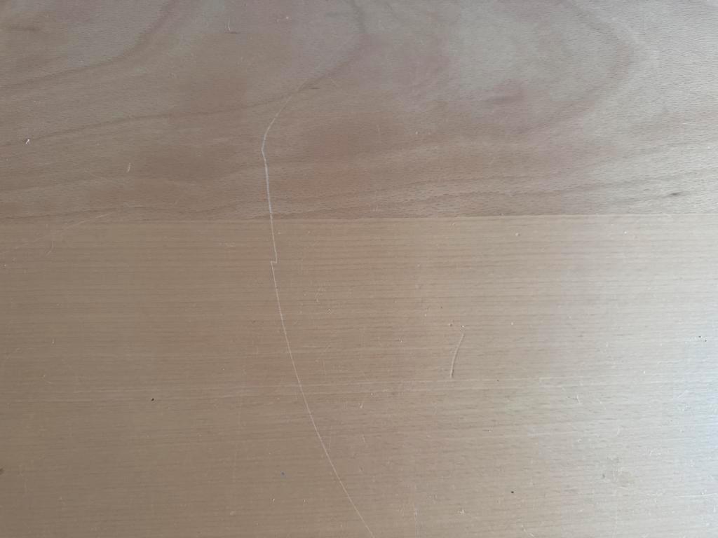 Groot bureau. 160 Cm breed en 80/150 cm diep. Heeft gebruikssporen. Het bureau is handmatig in hoogte te verstellen!