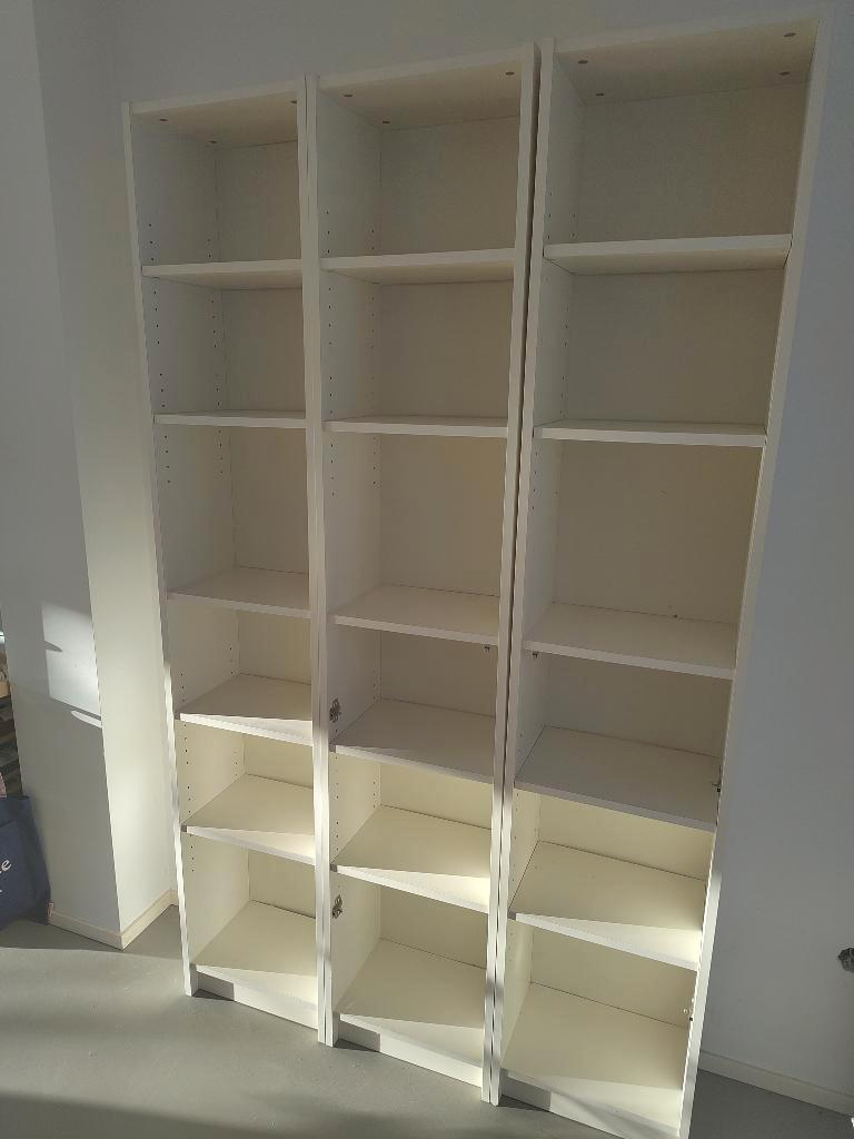 Drie onderdelen van 202cm hoog, 40cm breed en 28cm diep. Vijf planken per kast