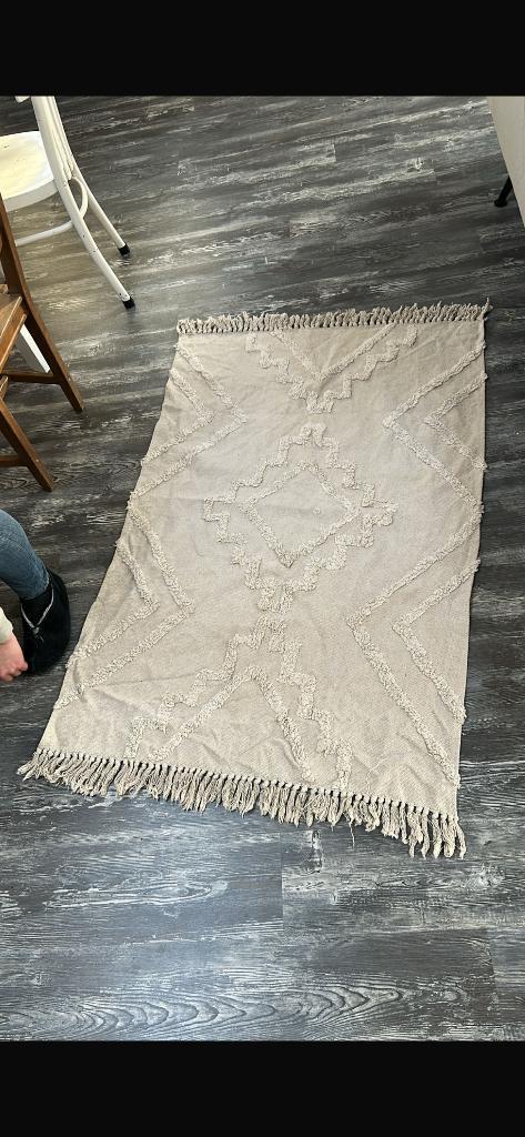 Leuk kleed (afmetingen ongeveer 100x140). Wegens verhuizing niet meer in gebruik. Gratis af te halen. Kleed is gewassen en komt uit een rook- en diervrij huis.