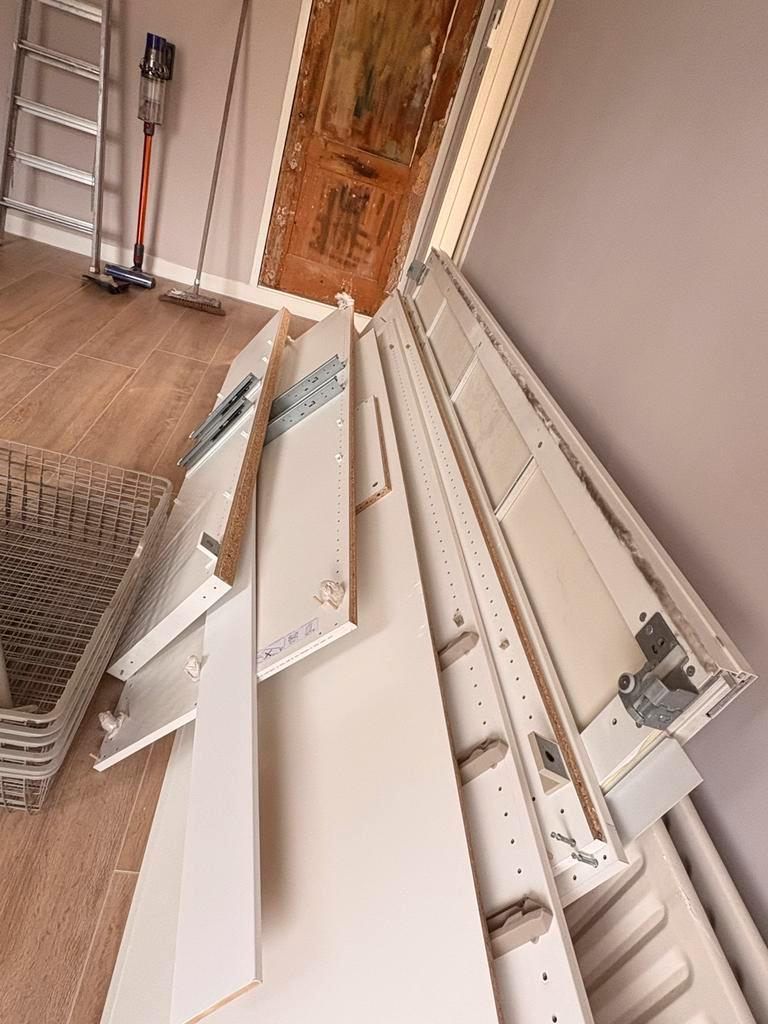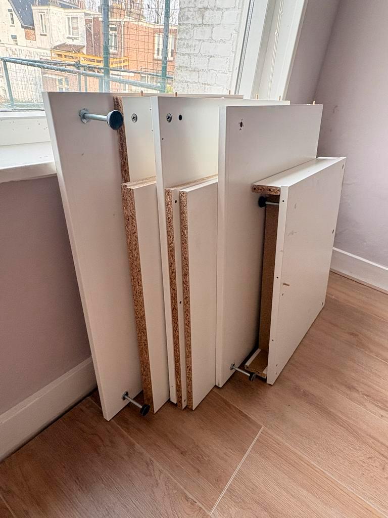 Gratis af te halen: diverse onderdelen van een ikea kast, waaronder planken, schuifdeuren en opbergmanden. Ook planken van een hoekelement van een pax kast. Er kunnen wat schroeven ontbreken, dus vand
