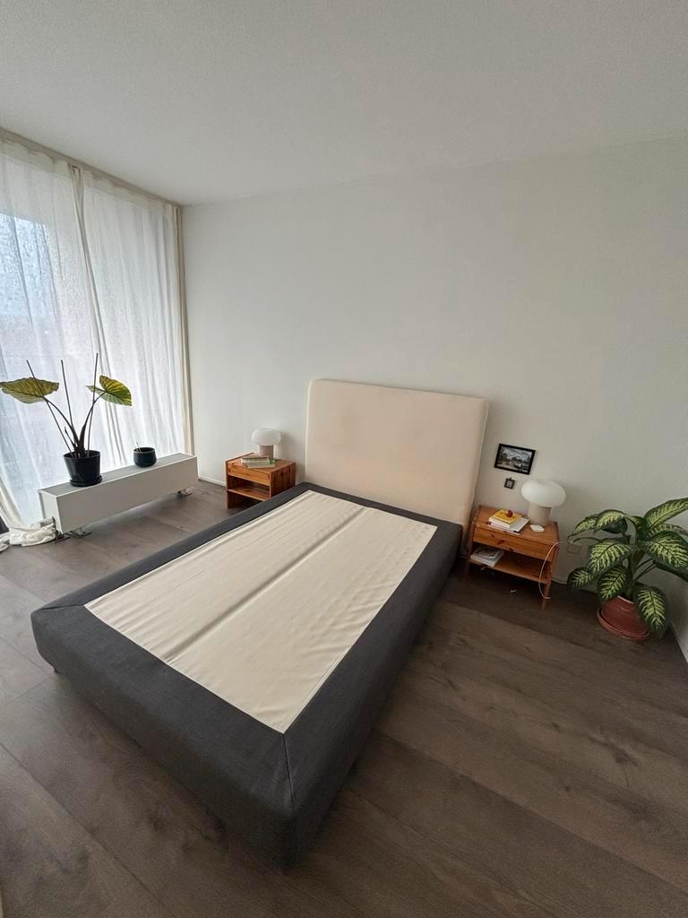 Comfortabel ikea tweepersoonsbed met een zacht hoofdbord. Wordt verkocht i.v.m. Gezinsuitbreiding. Het bed is in goede staat en is perfect voor een kleine/grote slaapkamer. Het matras en topper zijn i
