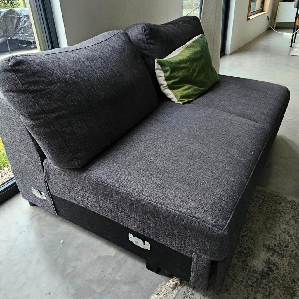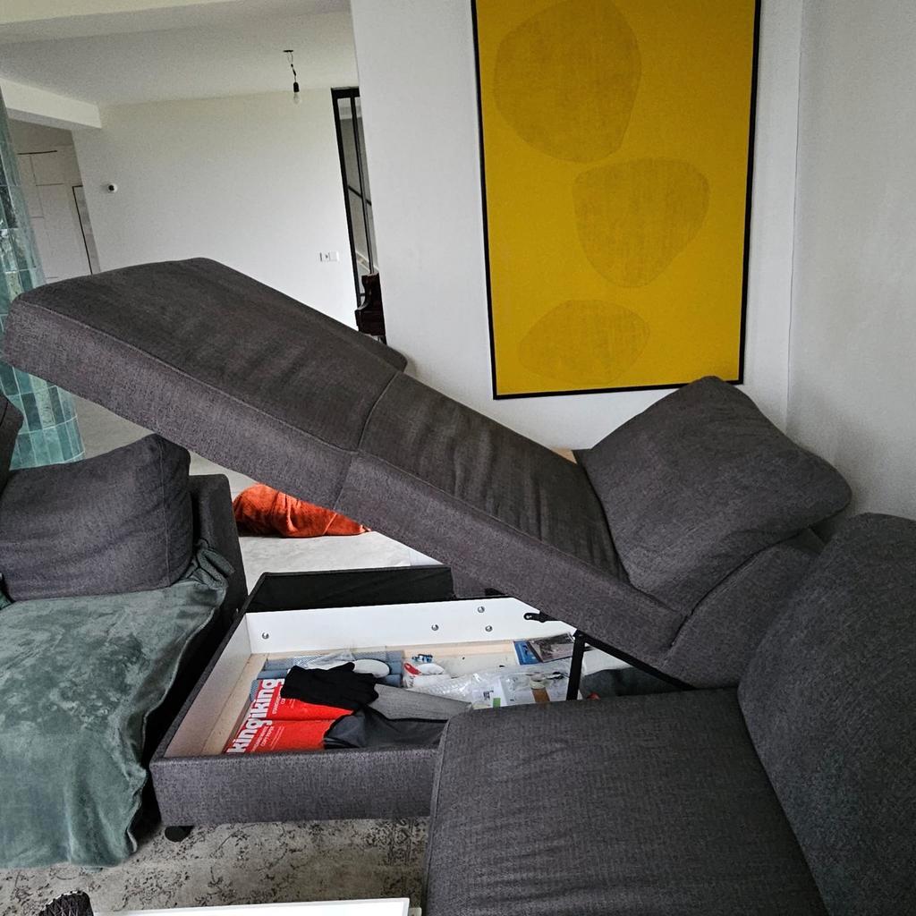 Moet zsm weg!!!! Gratis af te halen. Comfortabele grijze hoekbank met handige opbergruimte. De bank is in 2020 nieuw door ons gekocht en kan zeker nog een 2e ronde mee. Alle elementen kunnen aan elkaa
