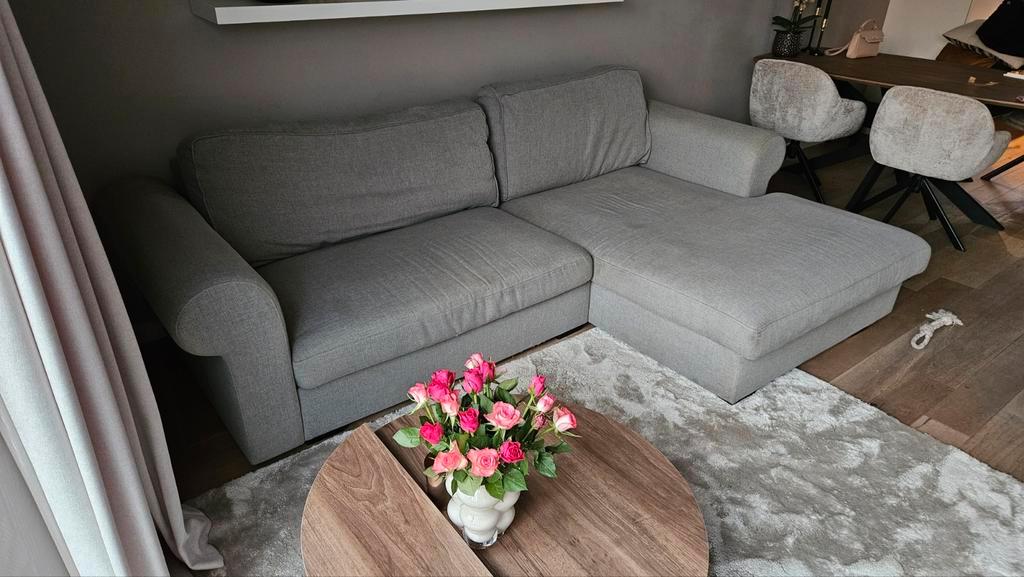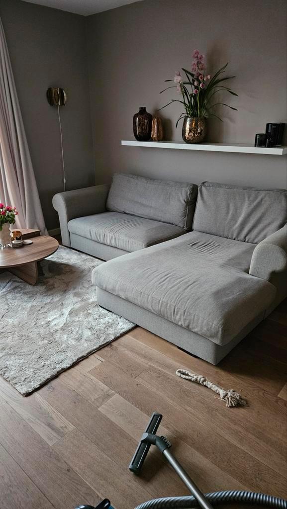 Deze heeelijke hoekbank met een groot liggedeelte voor 2, is nog hartstikke goed alleen moet ie eruit omdat de nieuwe komt. Taupe/grijs, bestaat uit 2 delen. Lounge 165cm breed 178 cm ophalen per dire